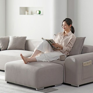 세계로가구 슬러 아쿠아텍스 기능성 패브릭 모듈 소파 2인용(좌형)+스툴, 오트밀그레이