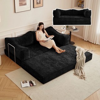 넓은 쇼파 다용도 소파 소형 침대 거실 인테리어, 블랙 55D 고탄력 스펀지형, 가로 길이 1.5m