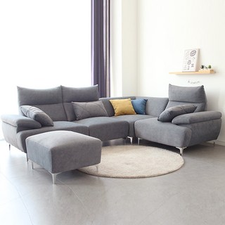 [가구밸리] 엠마 가죽 패브릭 모듈형 소파, 그레이보조스툴