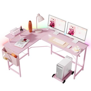 월로덴VORDERN L자형 코너형 컴퓨터 게이밍 책상, 탄소섬유핑크 PRO