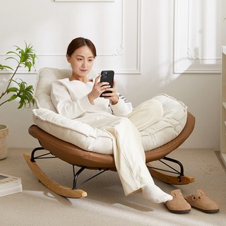 클라인 푹신한 흔들의자 1인용 소파 안락 스윙체어 의자 거실 쇼파, 1개, 베이지