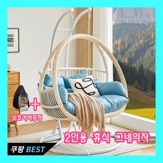 라탄 흔들의자 그네의자 수유의자 안락 행잉 스윙체어 정원 등나무 라운지 실내 집 카바나, 2인용 우드(폭140cm) 커버무료증정, 1세트