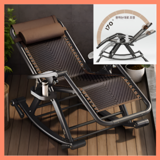 데이오 접이식 라탄 흔들의자 1인용 리클라이너 고정가능 2WAY 철재 침대 거실 실내 야외, 1개, 브라운
