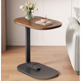 감성 타원형 사이드테이블 우드 간이책상 노트북 커브 식탁 탁자 쇼파 거실 방 침대, 브라운
