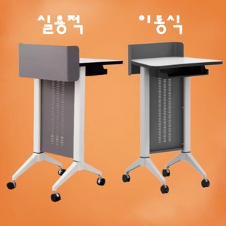 프라티움 실용적인 강의대 이동식 강연대 발표대 교탁 연단 데스크 사무실가구 책상, 화이트+그레이 컬러 (이동식 강의대)