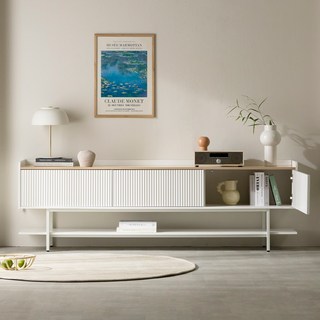 웰퍼니쳐 아띠 템바보드 거실장 1800 도어 방문설치, 화이트 + 오크