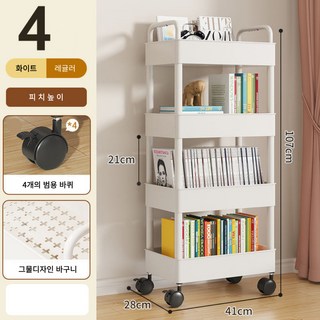 피엔엘라이프 공간활용 이동식 슬림 책장 감성 트롤리, 화이트, 4단