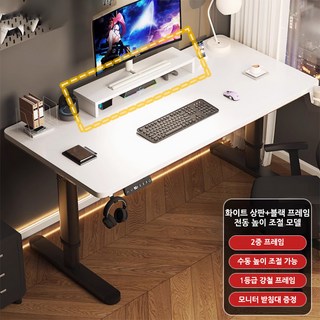 스마트 튼튼한 저소음 모션데스크 컴퓨터 책상 사무용 사무실 높이조절 테이블 스탠딩 스탠드, 화이트+블랙