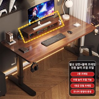 스마트 튼튼한 저소음 모션데스크 컴퓨터 책상 사무용 사무실 높이조절 테이블 스탠딩 스탠드, 월넛+블랙
