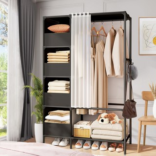 헤이빌리 조립식 옷장 커튼 옷걸이 행거, 블랙