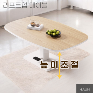 하움가구 리프트업 거실 테이블 소파테이블 높이조절, 화이트프레임, 내츄럴