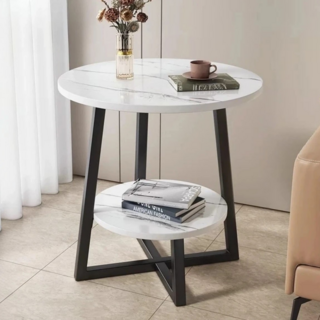 태영스토어 우드 라운드 거실 리빙 선반 테이블, 마블화이트