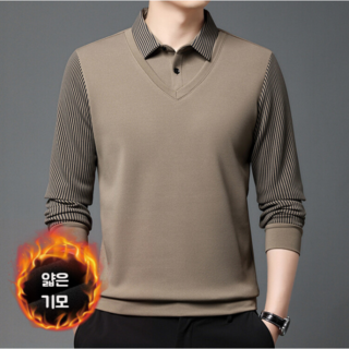 NEW 남자 기모 폴로 긴팔티셔츠 간절기 골프 티셔츠 이너 긴팔티 남성브이넥티 니트긴팔티 카라 상의 소프트 프리미엄원단
