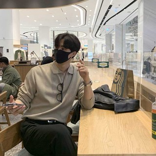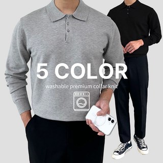 리펙트 고급스러운 남자 긴팔 니트 카라 티셔츠