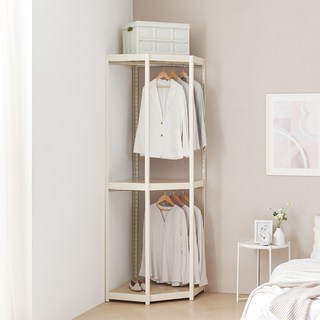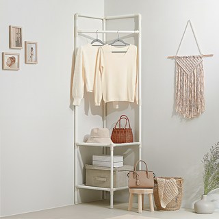 코너옷걸이 코너행거 좁은 옷장 침실 원룸 선반 튼튼한 이동식 행거 투에스리빙 코너형수납선반, 흰색