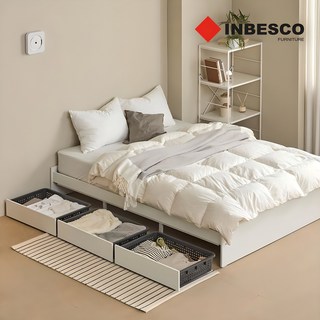 [가구야]기간한정! 통깔판 서랍형 침대+매트리스, 아이보리/본넬